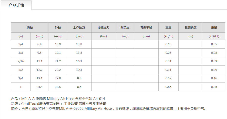 用途:具有棉線,細繩或纖維增強層的的軟管,主要用于負載空氣。