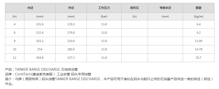用途:本產(chǎn)品可用于諸如在碼頭與船只之間的石油基產(chǎn)品傳送一類的排送(卸送)作業(yè)。
