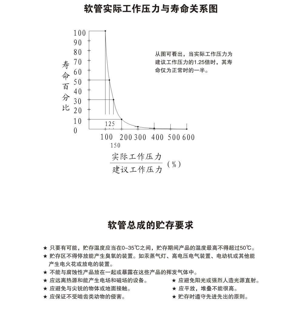 技術參數內層:丁腈合成橡膠增強層:一層鋼絲編織外層:Carbryn?合成橡膠;RMA分類級別的A等級(高耐油性),還帶有Microban?保護材料工作溫度:-40°F到210°F(-40°C到99°C)