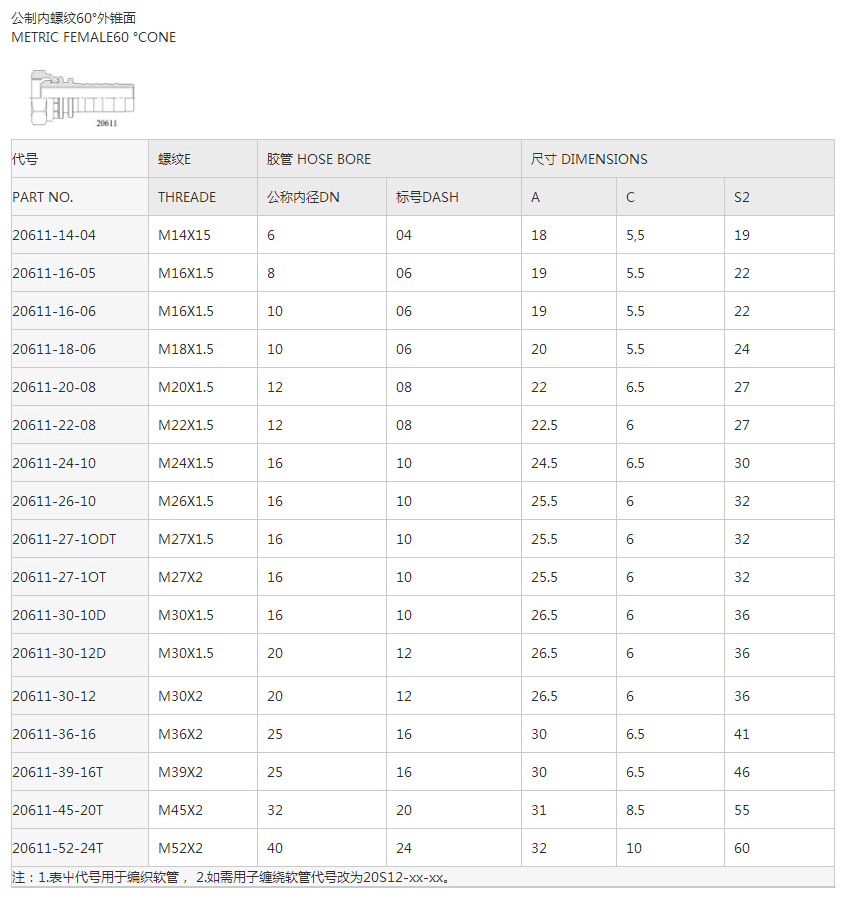 20611公制內螺紋60°外錐面系列
