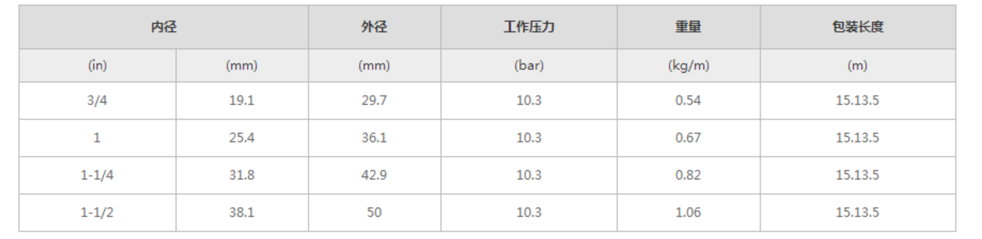 外膠:黑色Plioflex合成橡膠(環(huán)裹壓印)。可提供帶有綠色或白色的管外層的產(chǎn)品種類(本品并非符合FDA標(biāo)準(zhǔn)的產(chǎn)品)
