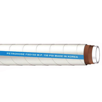 內膠:光亮的以交聯聚乙烯為基膠的合成橡膠SPECLAR(XLPE)。外膠:帶有白色螺旋狀條紋的綠色的以三元乙丙為基膠的合成橡膠VERSIGARD。增強層:單層合成纏繞纖維和兩條鋼絲纏繞層,有利于排靜電。溫度:-25℉~150℉(-32℃~66℃)顏色:綠色內徑外徑工作壓力爆破壓力彎曲半徑真空度HG包裝重量inmminmmpsiMpapsiMpai